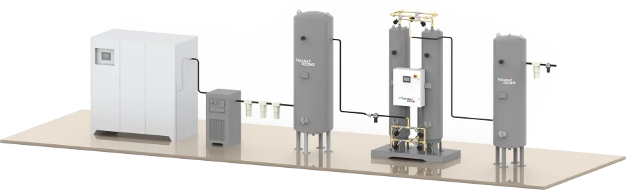 Faraday OxyMo PSA Oxygen Generator separates oxygen from compressed air by utilizing pressure swing absorption principle.